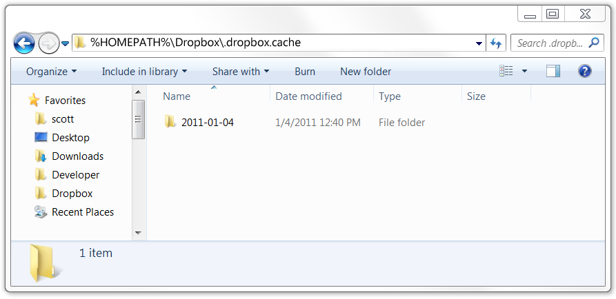 %HOMEPATH%\Dropbox\.dropbox.cache - This will take you directly to the Dropbox cache folder in your Application Data folder.