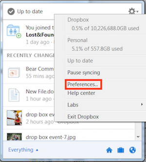 If you'd like to disable the Dropbox badge, you can do so at any time.