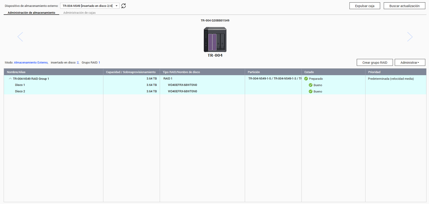 No tengo experiencia con las diferentes formas de gestionar estas cajas, ni con los programas para gestionarlo por software desde Windows y prefiero no tocar nada de momento.