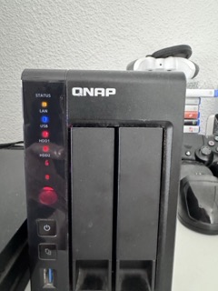 Tengo un QNAP TS-251+ y hace unos días no respondía, tiene todas las luces encendidas. Un amigo, el mismo que me recomendó entrar en este mundo de NAS hace unos años, me dijo: "Eso son los discos duros. Han muerto". Le hice caso y, después de gastarme 275€ en dos discos duros de cuatro teras, el problema persiste; todas las luces siguen encendidas y no responde. (adjunto foto)