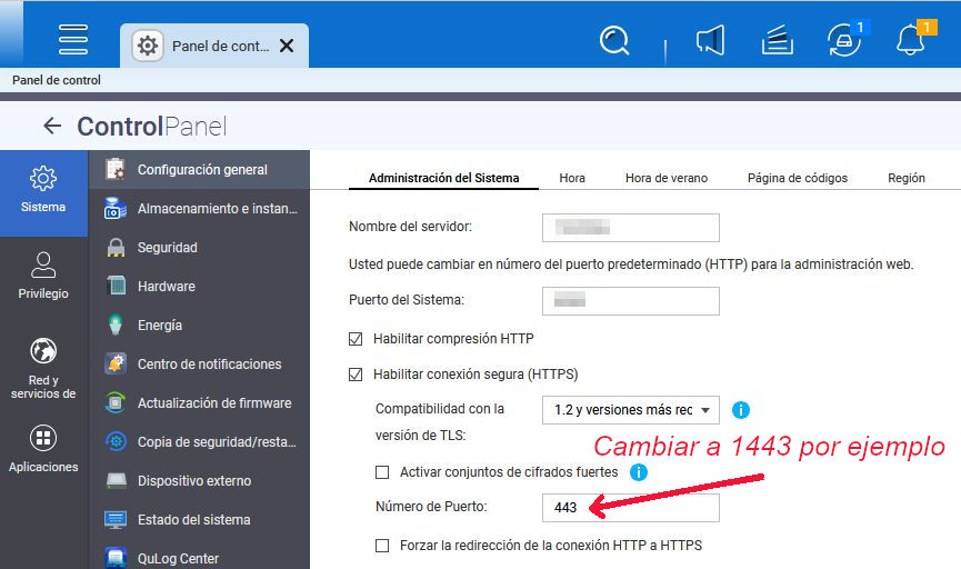 Para dejarlo libre hemos de cambiarlo en el panel de control para que QTS use por ejemplo en 1443.