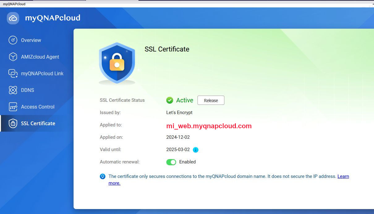 Soy "pobre" y sólo dispongo del certificado myqnapcloud.com de LetsEncrypt que me da QNAP.