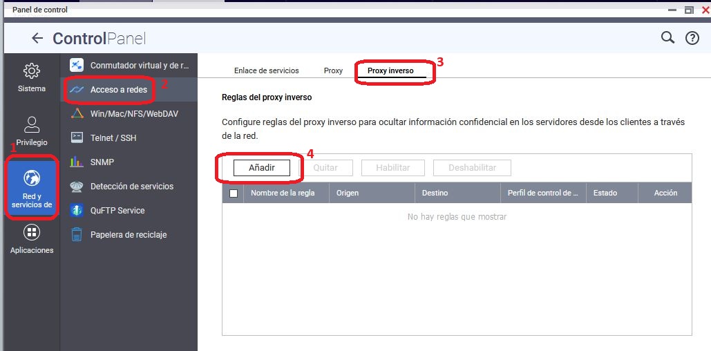 Aquí lo único que podemos hacer el activar el proxy inverso que integra QTS.