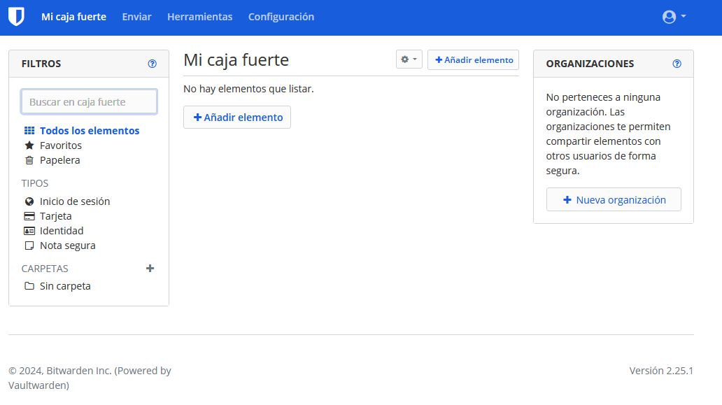 En este post voy a describir como instalar un docker gestor de claves vía web que nos permita acceder al mismo desde el exterior de nuestra red local.