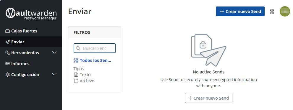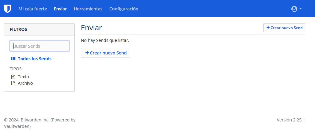 Desde esta pantalla podemos enviar cadenas de texto mediante enlaces con clave. Esta función es similar a este docker pwpush