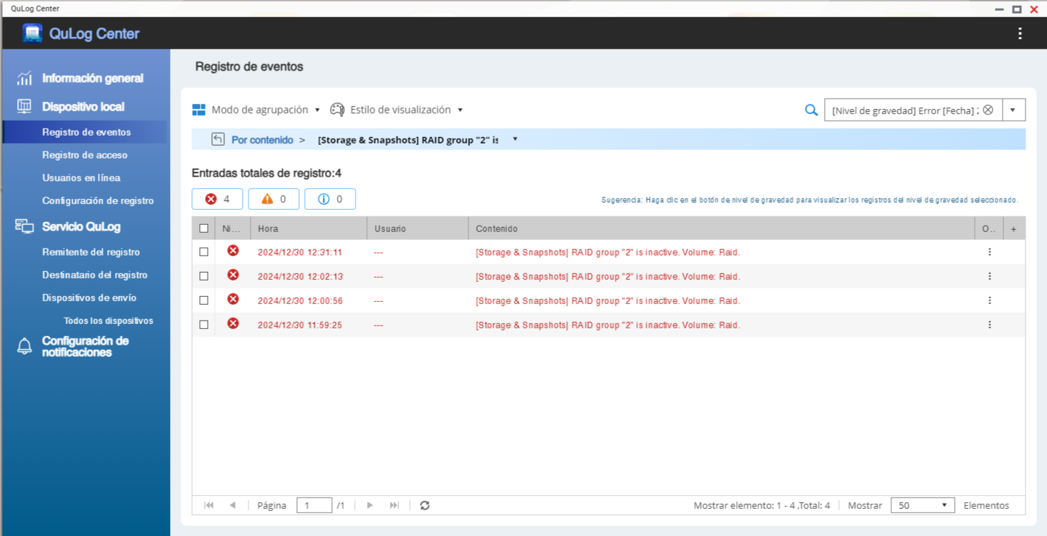 Añadí los discos raid una a uno y el NAS los reconoció pero con mensaje de error