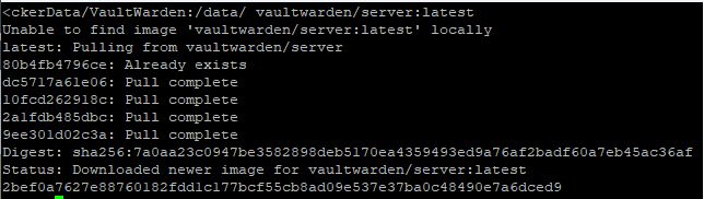 -v /share/DockerData/VaultWarden:/data/ es la ruta persistente de los datos del docker. En el ejemplo es una carpeta VaultWarden que está dentro un carpeta compartida llamada DockerData. Esto podemos cambiarlo según nuestras necesidades.