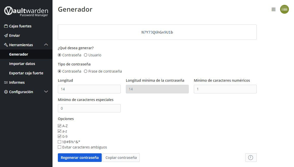 Esta opción es para generar claves según criterios de longitud y caracteres a emplear.