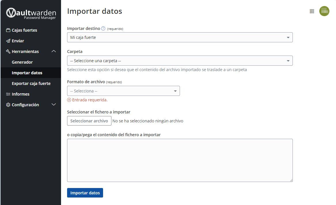 Esta pantalla es para importar claves desde otros formatos y programas