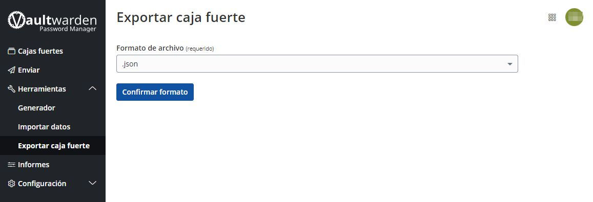 Esta pantalla es para exportar nuestra claves
