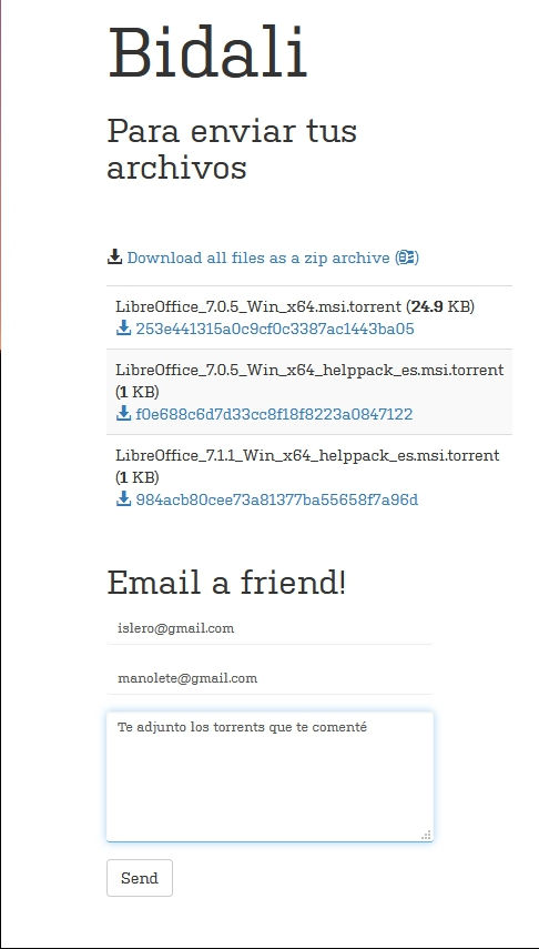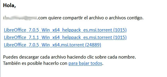 Si enviamos varios archivos podemos descargarlos por enlaces unitarios o bien por enlace único.