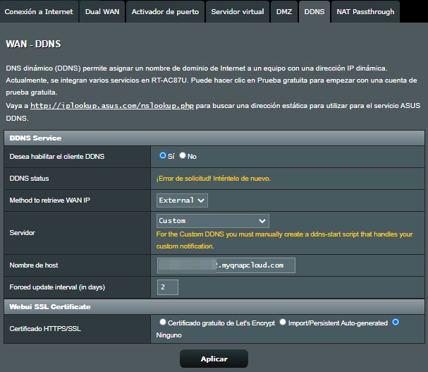 El router tiene opción de actualizarla mediante servidor DDNS pero me da error con el "MaquinaX.myqnapcloud.com".
