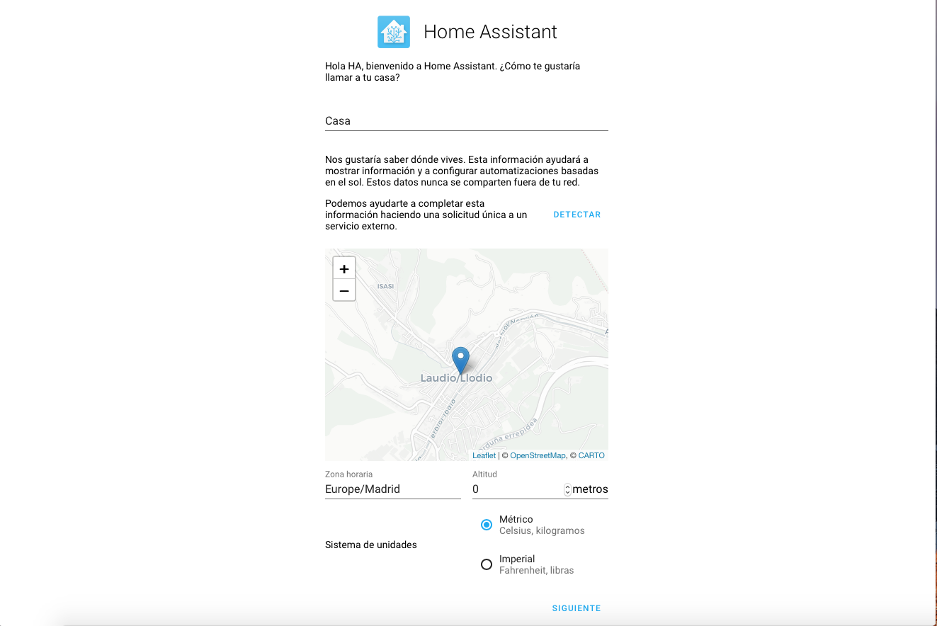 8. Le damos a detectar y automáticamente nos indicara la dirección donde vivimos, ahora tenemos que ser precisos y ubicar bien nuestra casa para el tema de automatizaciones y la geolocalización ya que si le indicamos una mala ubicación por ejemplo: si queremos que se nos habrá la puerta del garaje cuando estemos a 20 metros de casa no nos funcionara.