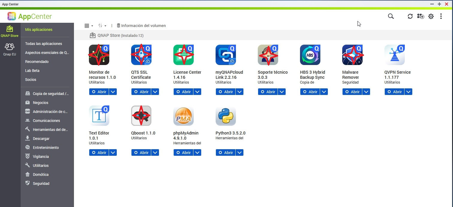 Si vamos al app center veremos las aplicaciones que movimos, junto con las que NO PUDIMOS MOVER. Al parecer QTS las reinstala. Esto no me lo esperaba.