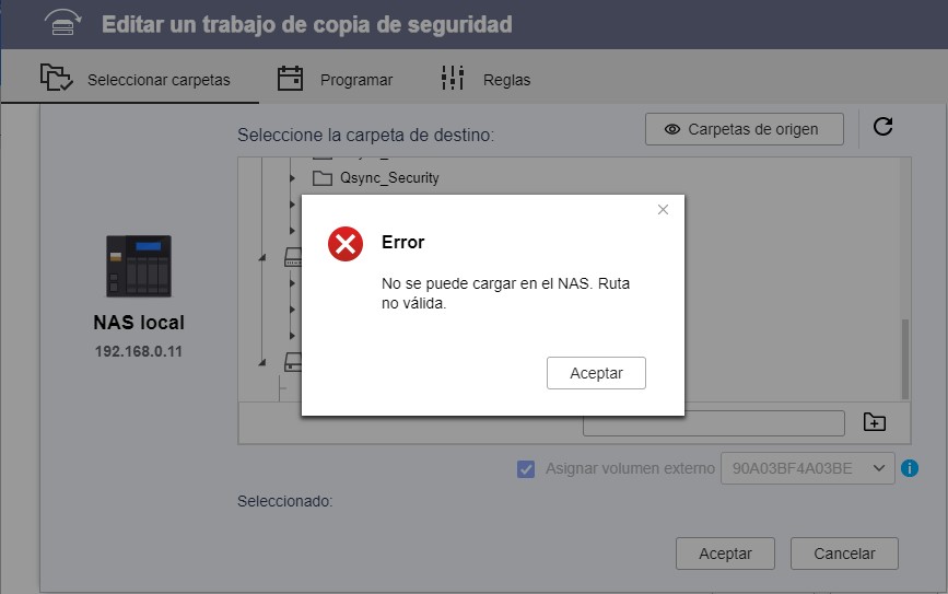 Hace unas semanas, al realizar la copia de seguridad con HSB3, decidí incluir una carpeta nueva a la copia existente. El problema viene que al intentar acceder al disco USB externo y ampliar el arbol, me da un error (adjunto imagen)