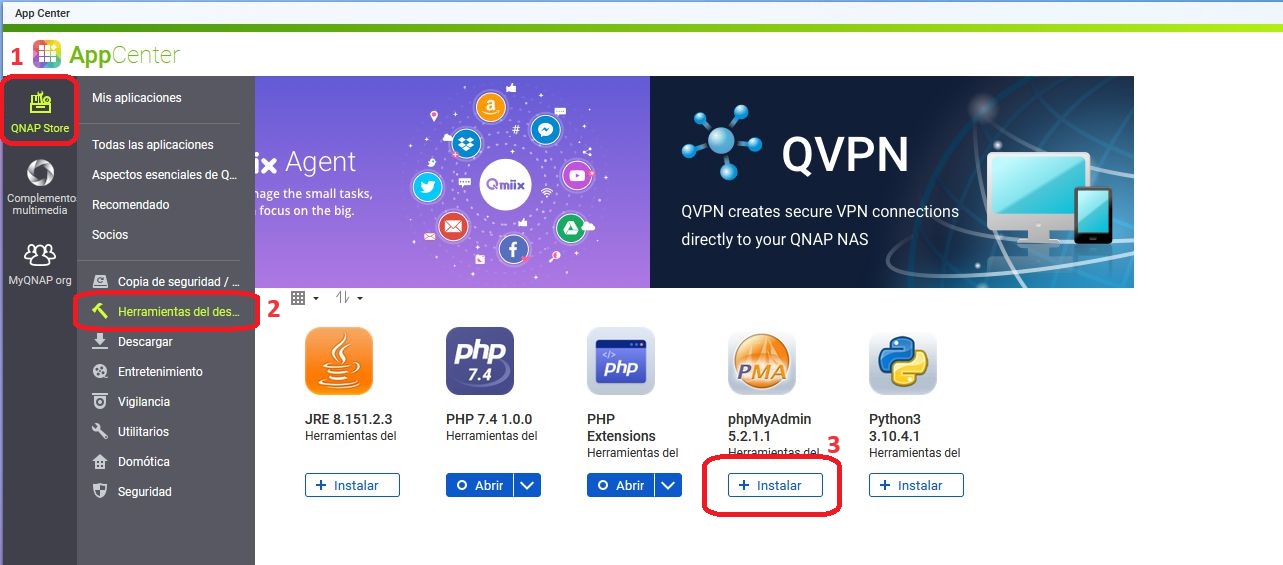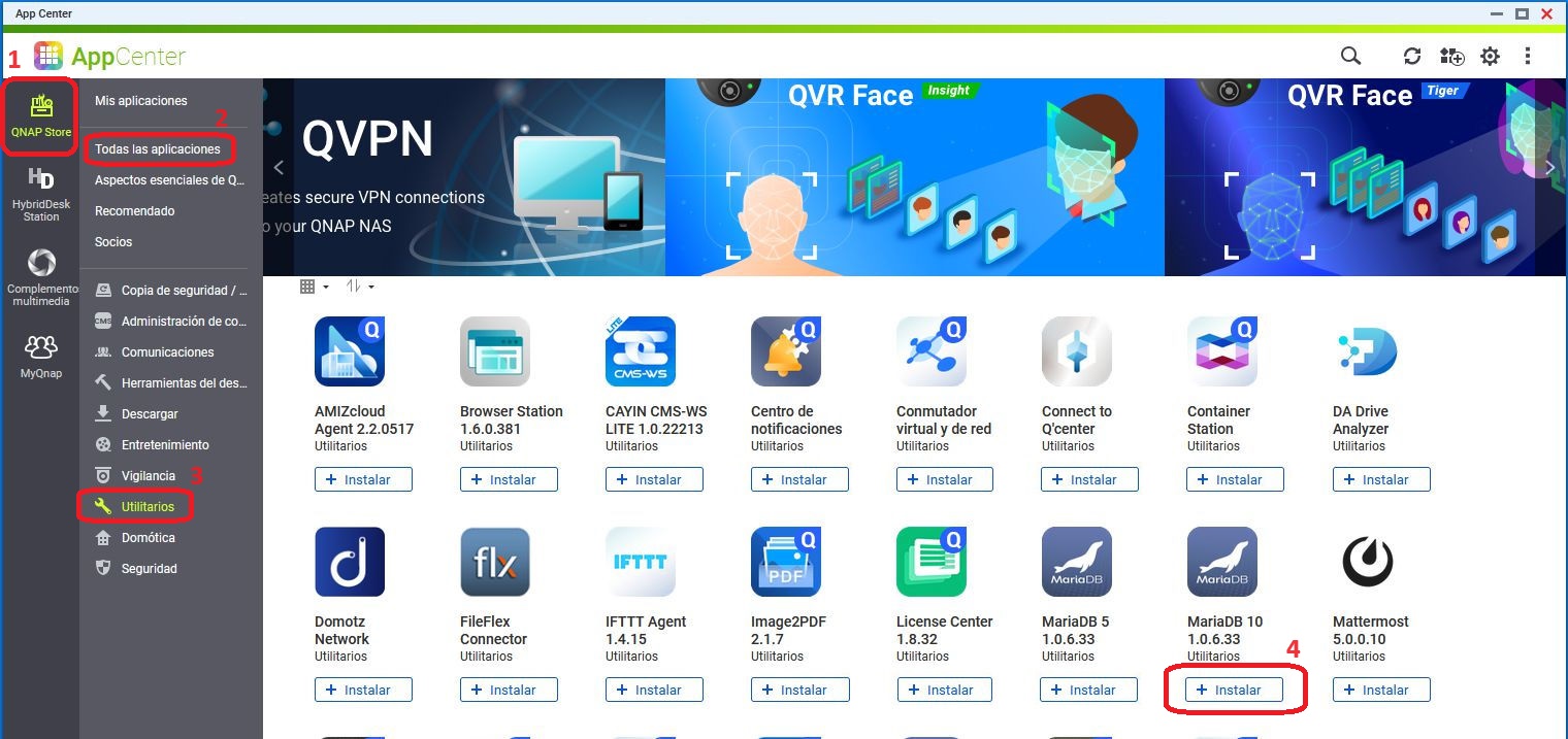 1-instalar y activar MariaDB 10 en QTS