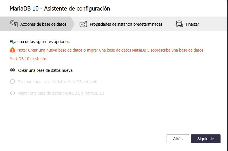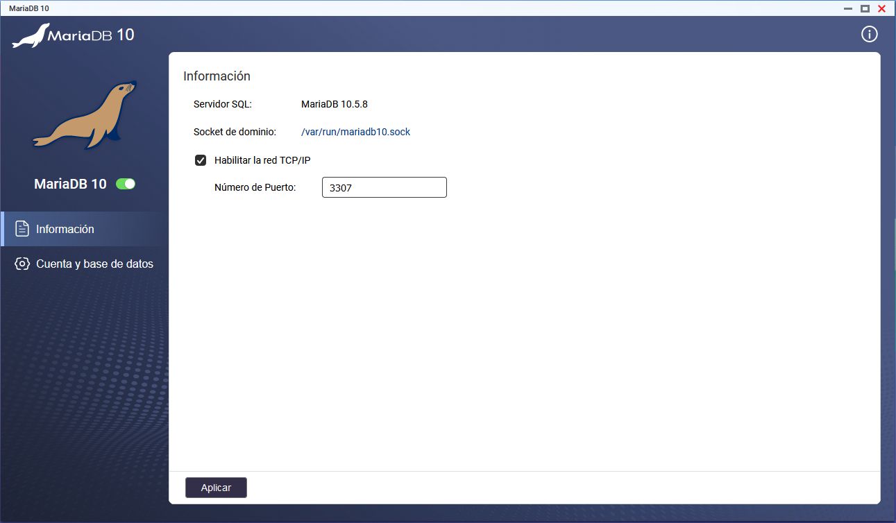 En nuestro caso hemos instalado una MariaDB 10