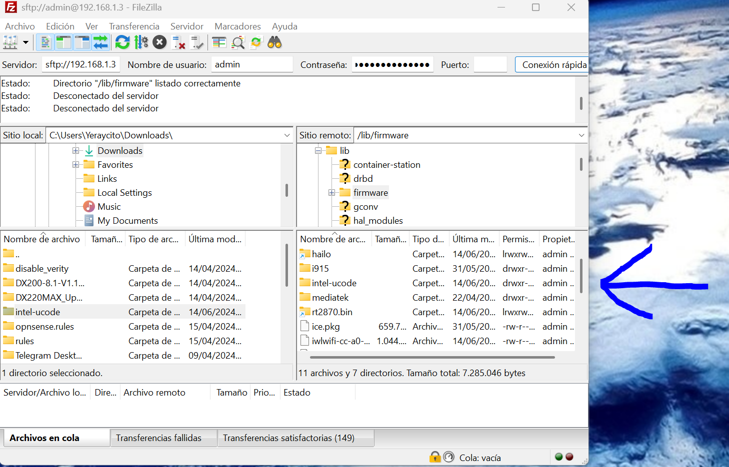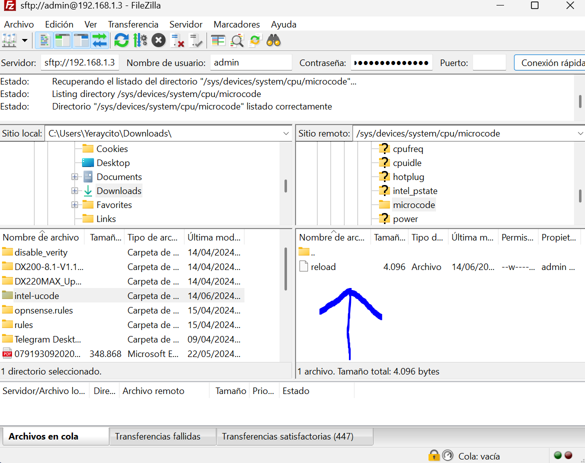 Esta carpeta intel-ucode la tenemos que pasar con Filezilla al nas y ponerla en la siguiente ruta: