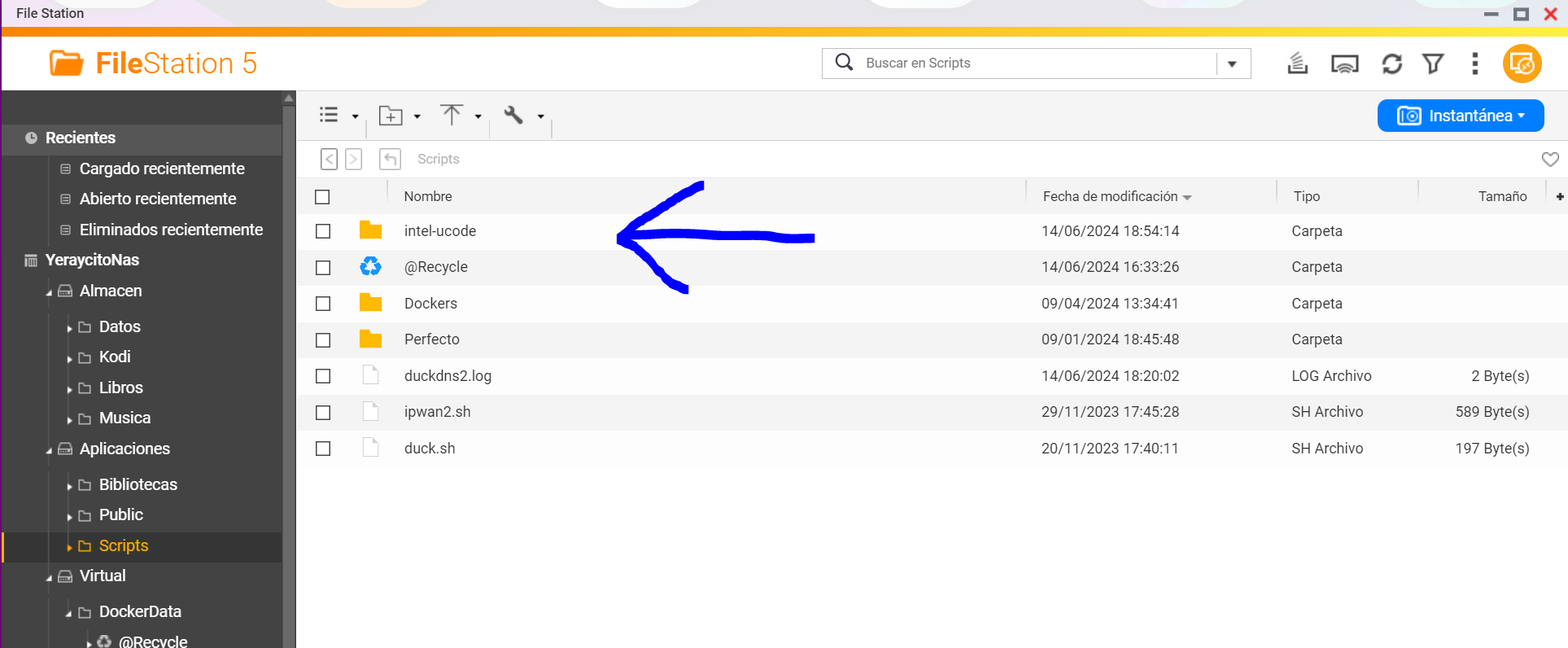 Lo primero que vamos a hacer es pasar la carpeta intel-ucode que tenemos descargada en el ordenador a nuestro nas, la podemos meter dentro de la carpeta compartida del nas que nos apetezca: