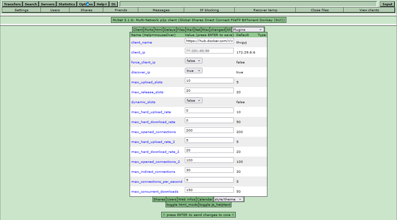 -v /share/...:/var/lib/mldonkey/temp Dirección para la carpeta archivos temporales