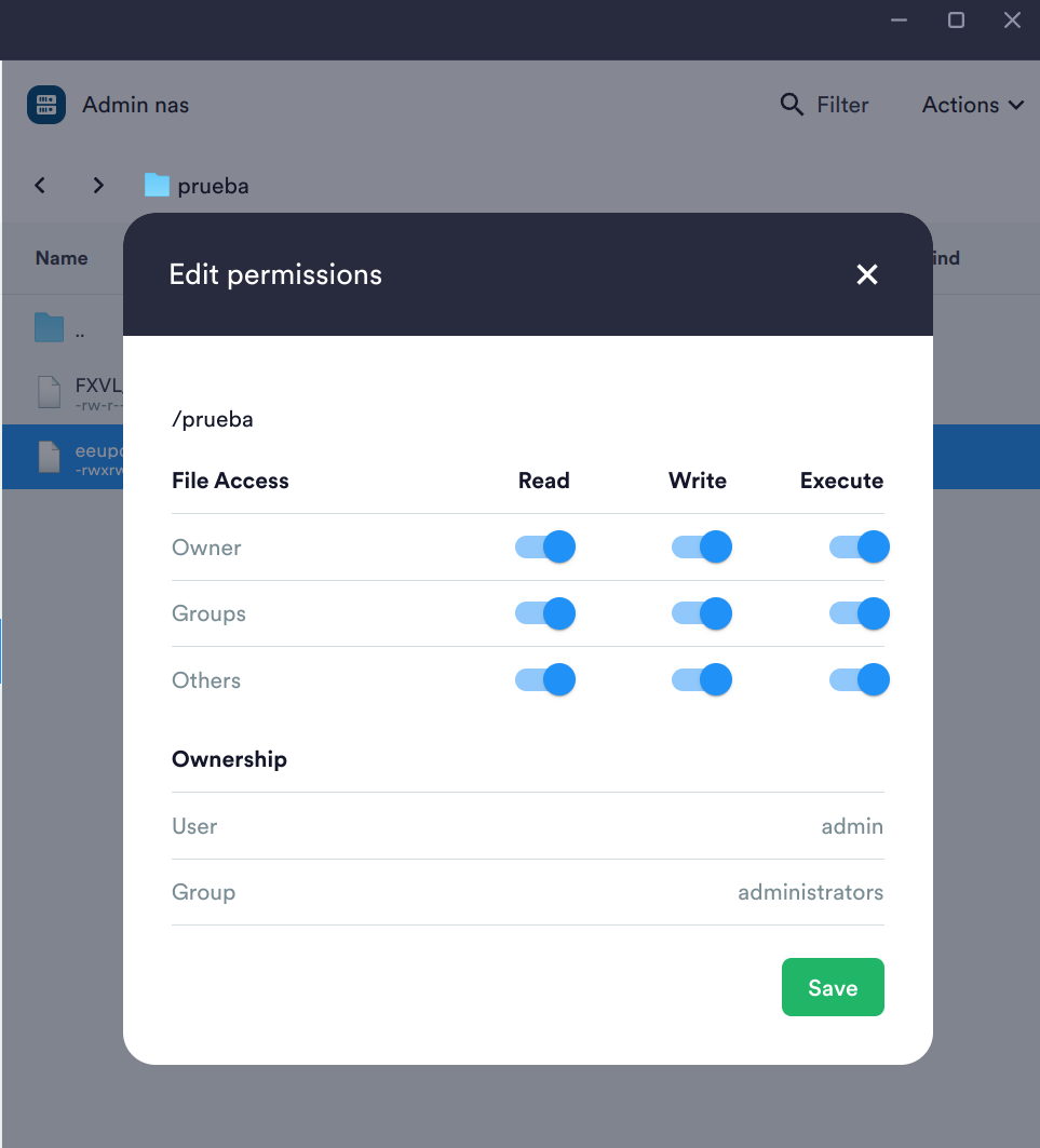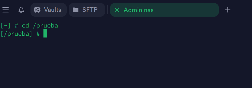 Una vez accedido paso a meterle esa carpeta de nombre prueba a mi nas.