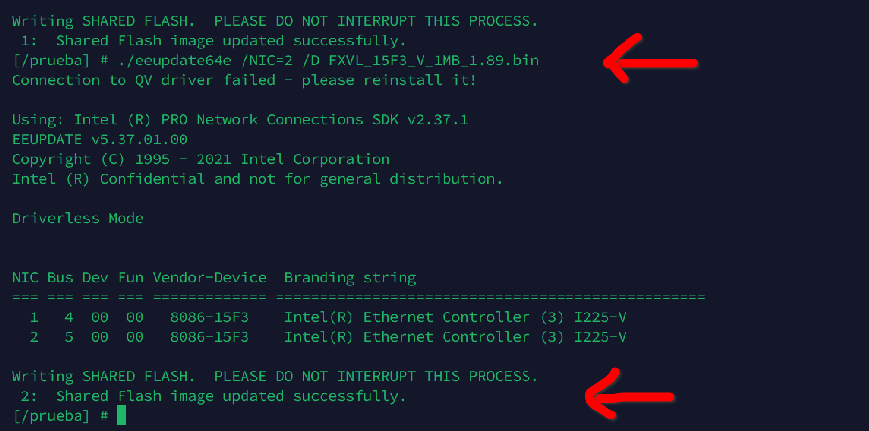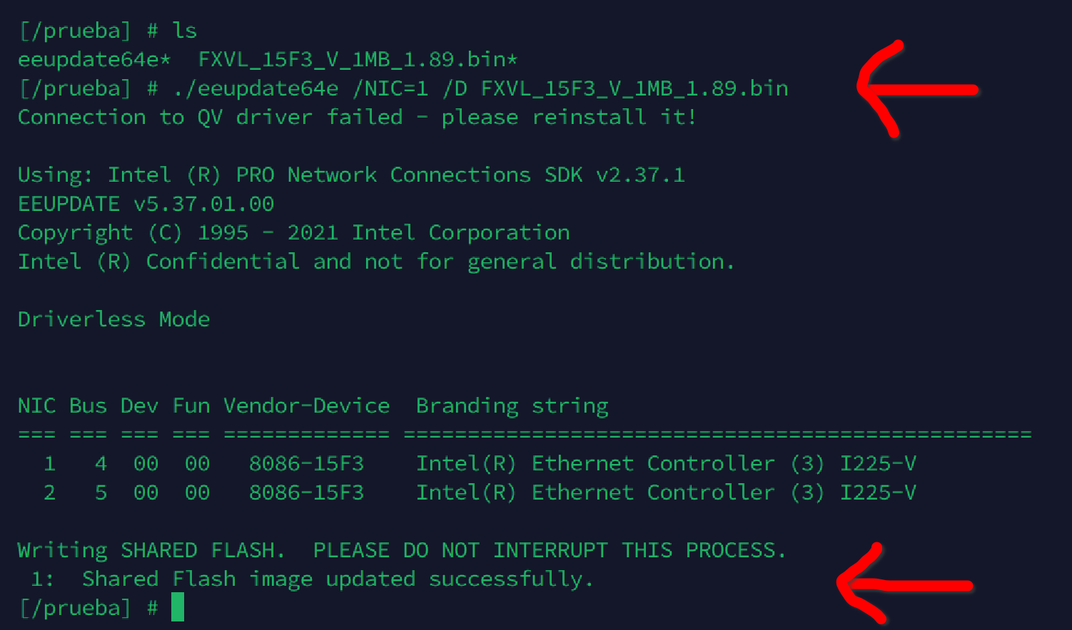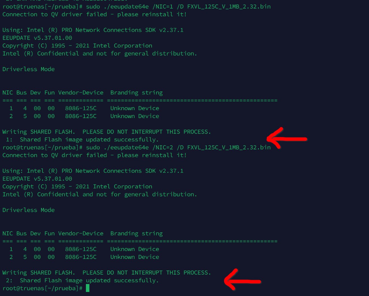 Como todo ha ido bien procedo a flashear mi segundo interfaz de red NIC2 con el siguiente comando: