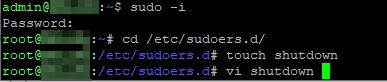 Code: admin ALL=(ALL) NOPASSWD: /sbin/poweroff, /sbin/reboot, /sbin/shutdown