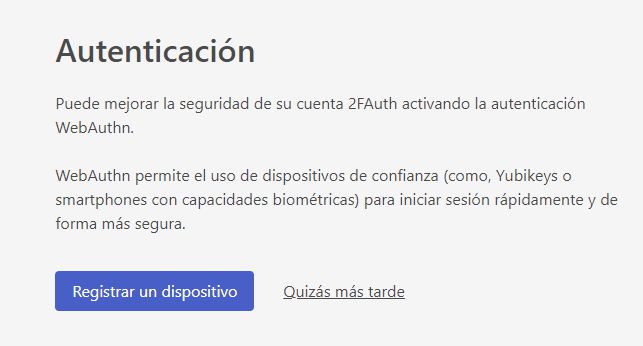 Tras dar nuestro nombre, dirección de correo y clave, nos da la opción de asociar una llave (Yubikey por ejemplo )