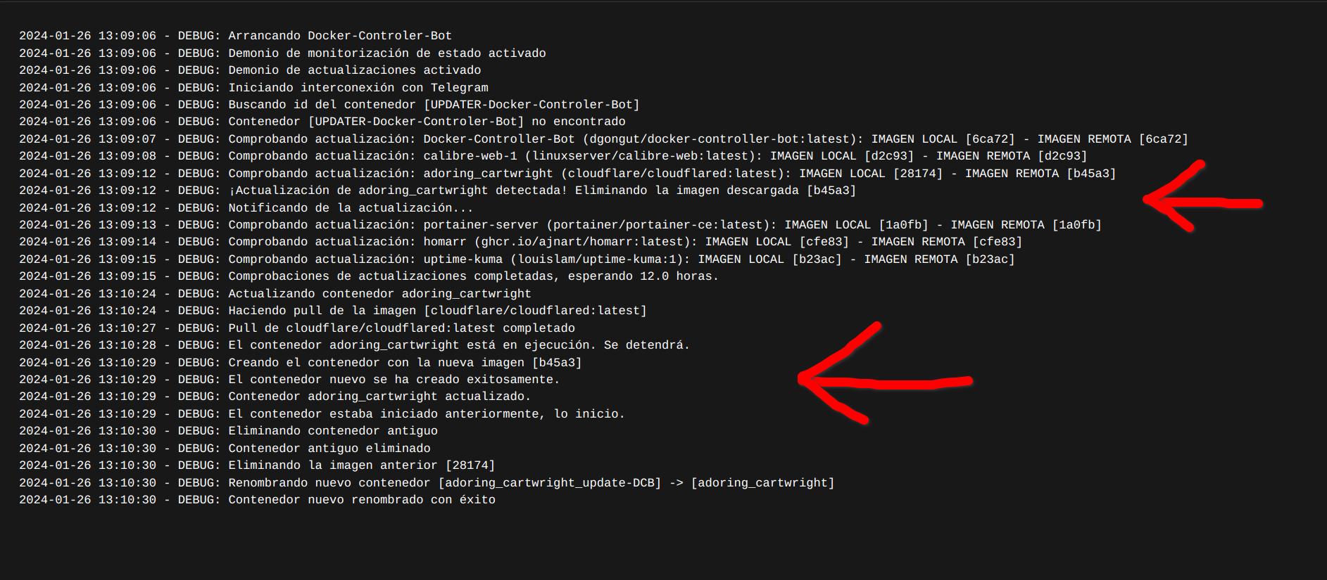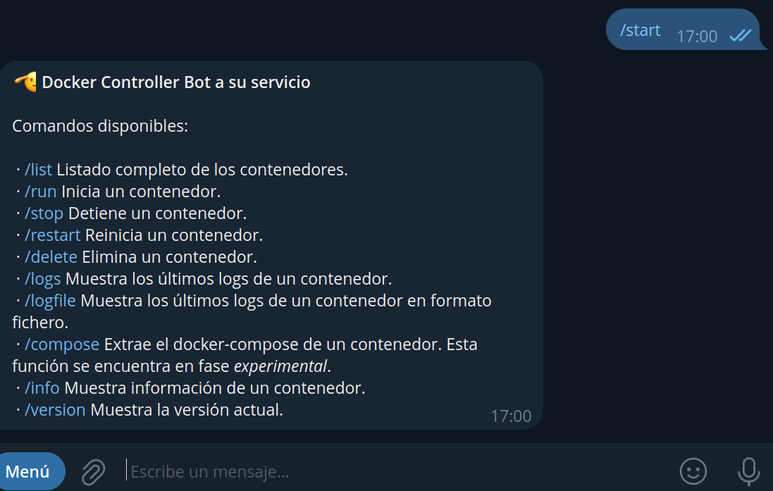 Code: docker run --rm -it --name BotTorrent4 -v /share/Download/peliculas:/app/multimedia -v /share/Download/torrent:/app/torrent -e "BOT_TOKEN=token_de_nuestro_bot_de_Telegram" -e "USUARIO_ID=numero_de_usuario" -e "API_ID=numero_id_API" -e "API_HASH=cadena_hash" -e "MENSAJE_INICIO=BotTorrent4 en linea" dgongut/dekkar-bot-torrent:latest