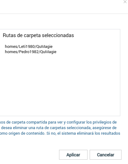 Pedro y Leti tiene los siguientes directorios para Qmagie: Homes/Pedro/QMagie y Homes/Leti/QuMagie. Aquí cada uno sube sus fotos desde el movil, por lo que Leti no tiene acceso a las fotos de Pedro y viceversa. Hasta aquí todo correcto.