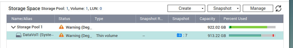 Mi TS 230 me avisa de que mi RAID 1 está en modo degradado. He visto en los tutoriales que significa que tengo que cambiar un disco porque ha fallado. Pero la cuestión es que luego el estado de los dos discos me aparece como bueno y sin problemas. Así que no sé qué disco tengo que cambiar... Adjunto imágenes.