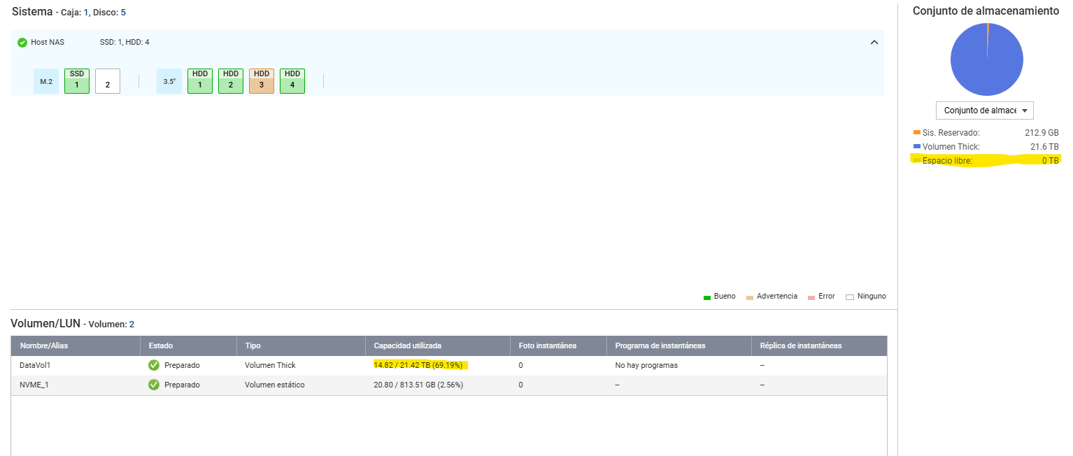 Tengo un TS-231K con discos de 2T y hace dos semanas apareció un mensaje de que el RAID 1 estaba degradado por fallo de uno de los discos.