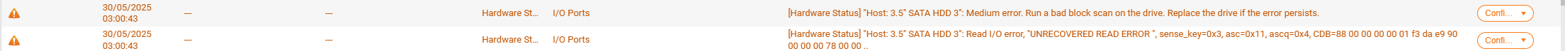 He leido un post previamente que ocurre algo parecido a mi caso, pero no es igual , es por ello que abro un hilo nuevo. La situación en resumen bien podrías ser que tengo alerta de SMART en una de los discos, no así en el Ironwolf Health Management de Seagate, pero no lo sé, por lo que os pido ayuda a ver vuestro parecer.