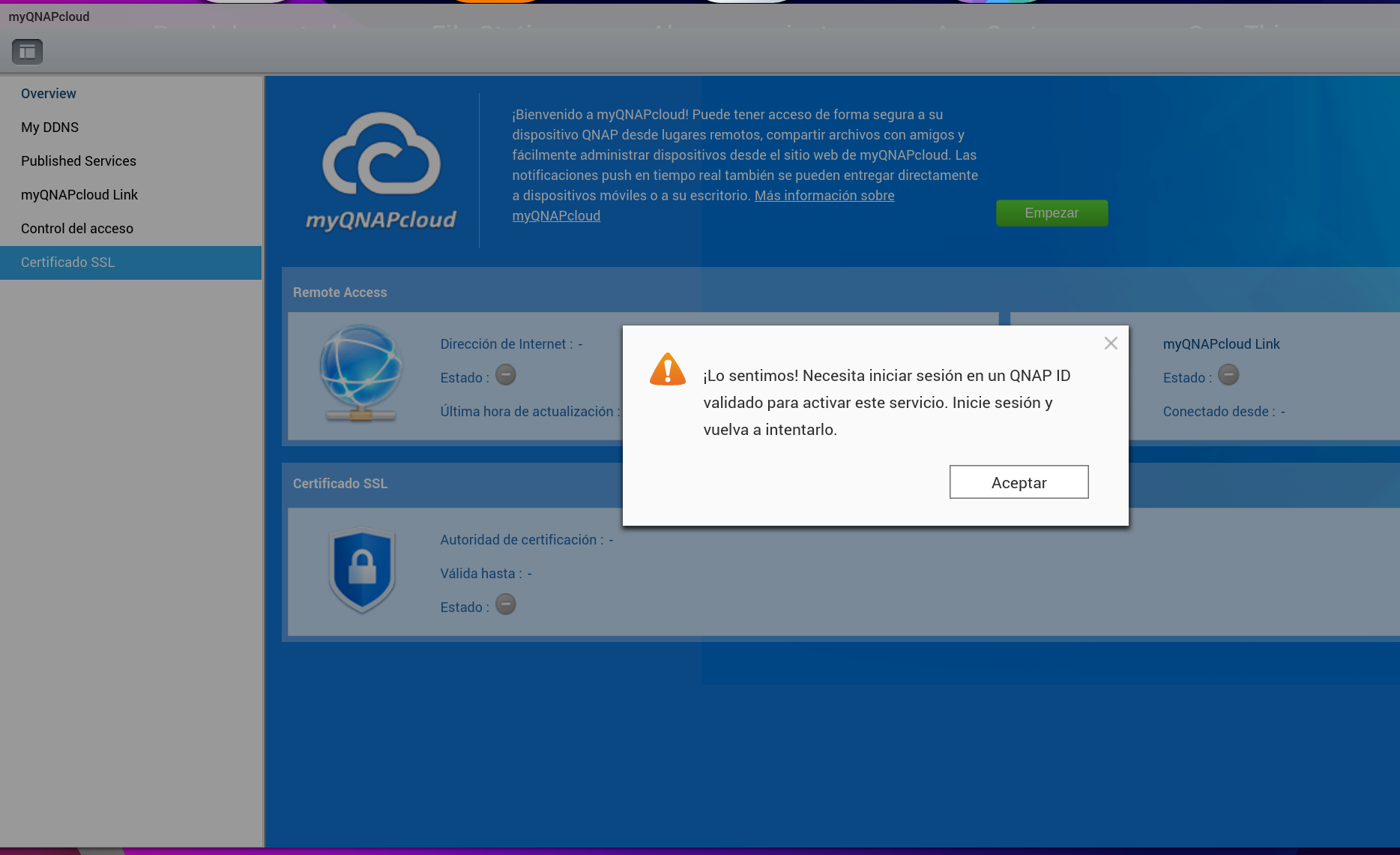 A la hora de utilizar un proxy para las conexiones https tenemos que tener dos cosas, un dominio y un certificado. Qnap en nuestro nas nos ofrece de serie las dos cosas, NO un dominio pero si un subdominio xxxx.myqnapcloud.com y un certificado que "de serie" es autofirmado pero que podemos cambiar fácilmente por uno de Lets Encrypt. El problema radica en que para tener ese subdominio myqnapcloud y un certificado Lets Encrypt tenemos que activarlo en el nas y últimamente no es muy buena idea por seguridad hacerlo: