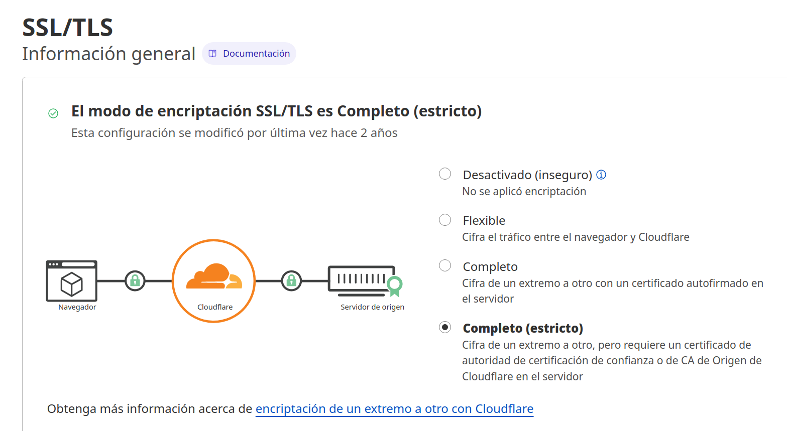Cloudflare tiene dos certificados https, el primero se llama Certificado de Perímetro y lo gestionan ellos y sirve para que el visitante reciba la conexión https. El segundo certificado es para el Servidor de Origen que en nuestro caso va a ser nuestro nas y es el encargado de la conexión https entre los servidores de Cloudflare y nuestro nas. Este último certificado es el que vamos a utilizar. Utilizándolo la conexión quedaría así: