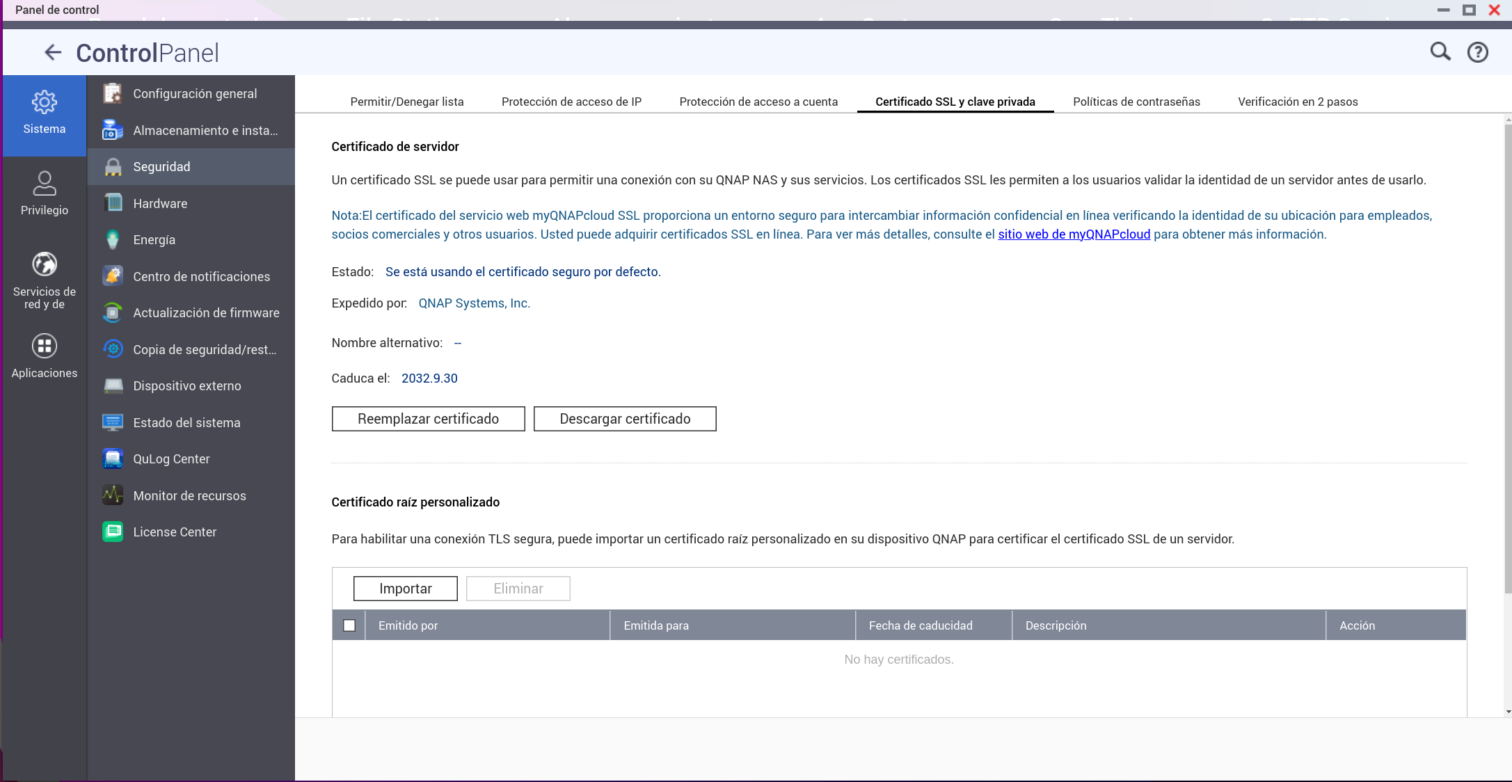 Cómo dije al principio nuestro nas ya tiene de serie un certificado autofirmado de Qnap que se puede sustituir por uno de Lets Encrypt. El proxy de QTS utiliza para las conexiones https el certificado que tengamos instalado en nuestro nas:
