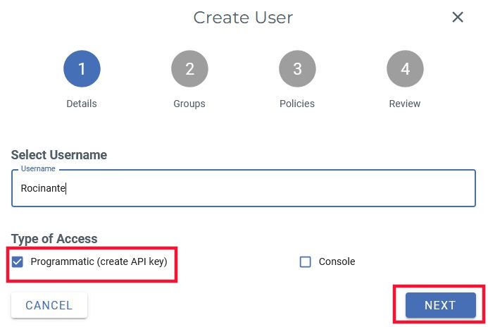 Ahora hemos de crear un usuario y los permisos de como accederá al espacio de almacenamiento.