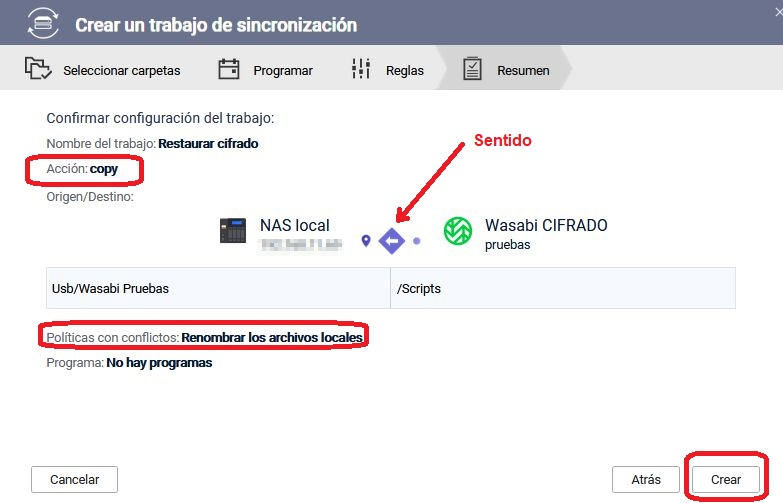 4 Creación del trabajo de sincronización en una dirección de nas a Wasabi