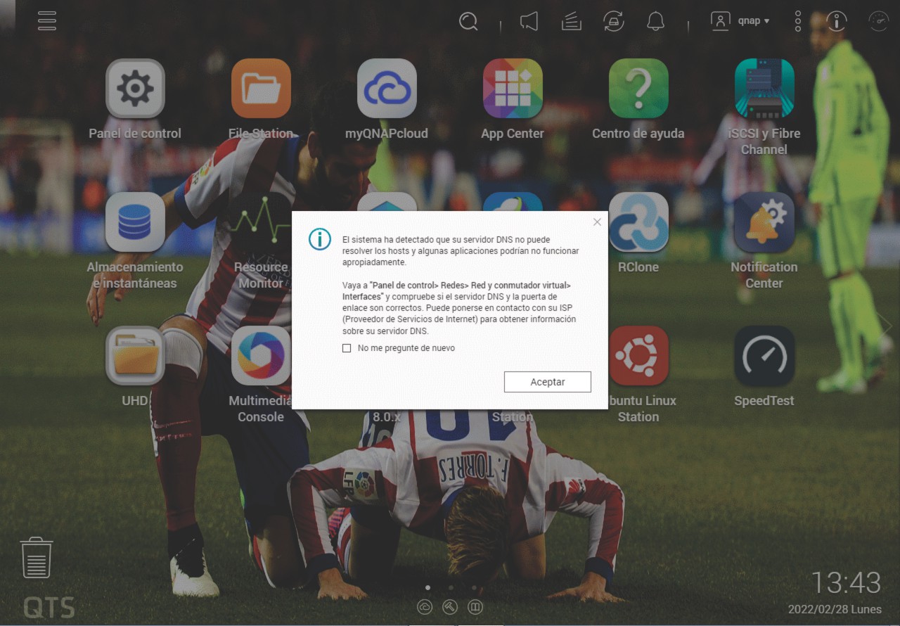El problema es que llevo unas tres semans notando que el NAS pierde conectividad aunque que puedo conectarme a él, incluso conectarme a la VPN de Wireguard sin problemas, pero me da continuos avisos de que no se puede actualizar el servidor DDNS, el cliente NTP, no puede actualizar a traves de la app center, tampoco funcionan las carpetas compartidas por samba, etc...