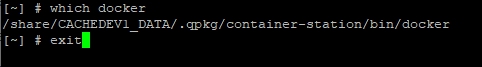 La ruta "/share/CACHEDEV1_DATA/.qpkg/container-station/bin/docker" es la que obtuvimos del which de la imagen anterior.
