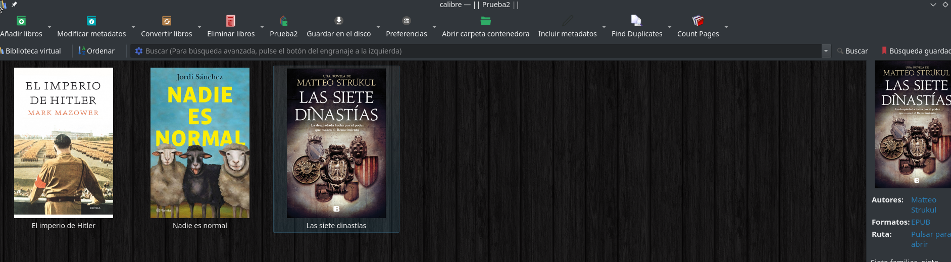 RE: Servidor de libros con Calibre - yeraycito - 07-07-2021 Ten en cuenta una cosa. El programa Calibre de ordenador crea bibliotecas con su carpeta correspondiente en la que dentro de ella crea a su vez otras carpetas por nombre de autor y dentro de esas carpetas crea otras carpetas individuales en la que están los archivos de un libro en concreto de ese autor. A la hora de copiar los datos al nas tienes que copiar todas esas carpetas. Para la prueba que indicas con 3 libros, si son de autores diferentes, tendrás en tu ordenador por ejemplo, una carpeta BIBLIOTECA que contendrá 3 carpetas, una por cada autor, que contendrán a su vez cada una de ellas, una carpeta con los archivos del libro. Aparte de todo lo anterior, en el directorio principal, tendrás un archivo metadata.db + un archivo metadata prefes. Lo que quiero decir es que toda esa estructura de carpetas dentro de tu carpeta BIBLIOTECA en tu ordenador es lo que tienes que copiar en la carpeta Calibre de tu nas más los archivos metadata. NO SE TE OCURRA copiar los libros sueltos. RE: Servidor de libros con Calibre - yeraycito - 07-07-2021 Me llama mucho la atención lo que os pasa a algunos de vosotros con los problemas que tenéis a la hora de decirle a Calibre-web dónde está la localización de vuestra biblioteca en el nas cuando lo instaláis por primera vez que os impide que el programa se inicie. Cómo desde hace ya bastante tiempo mi Calibre-web lo tengo en un mini-pc dedicado en exclusiva a ello y, por tanto, NO lo tengo instalado en el nas me ha picado la curiosidad y lo acabo de instalar en mi nas por si las actualizaciones del programa, del contenedor, de Container Station o incluso del firmware del nas daban algún tipo de problema a la hora de instalarlo y de que funcione. Otro motivo para hacerlo es debido a la próxima salida de QTS 5 https://www.qnapclub.es/showthread.php?tid=4135 que va a hacer que REINICIALICE mi nas y empiece de cero con el. Las pruebas las haré con mi nas, un TS-251 https://www.qnap.com/es-es/product/ts-251 que como veréis no es nada del otro mundo. Como he comentado al principio los problemas consisten en la ubicación de vuestra biblioteca en el nas. Unos la tenéis dentro de una subcarpeta, o sea, una carpeta dentro de otra carpeta, y otros en una única carpeta. A unos os funciona de una manera y a otros de otra. A continuación voy a demostrar con muchas imágenes que, a dia de hoy y en mi nas, LAS 2 MANERAS FUNCIONAN. Una vez demostrado ésto al final del todo de éste comentario os daré una posible teoría de vuestros problemas. Voy a dividir las explicaciones en 2 opciones Opción 1: La biblioteca en el nas está metida DENTRO de otra carpeta - Olvidándome del nas me voy al programa Calibre de mi ordenador y creo una NUEVA BIBLIOTECA a la que le voy a poner el nombre de Prueba y que va a contener únicamente 3 libros de autores diferentes. IMPORTANTE: Lo de crear una nueva biblioteca es sólamente para la prueba. Se da por hecho que en nuestro ordenador y en nuestro programa Calibre ya tenemos una biblioteca y que, segúramente, tendrá más de 3 libros. NO ES NECESARIO, por tanto, crear una nueva biblioteca para instalar Calibre-web. Si abro en mi ordenador esa carpeta llamada Prueba compruebo que están las 3 carpetas que contienen los 3 libros más los archivos metadata creados por el programa Calibre - Ahora me voy a mi nas. Mi nas lo tengo dividido en 4 particiones. En la primera partición llamada Aplicaciones que, como su propio nombre indica, están instaladas las aplicaciones de mi nas creo UNA NUEVA carpeta compartida a la que voy a llamar Calibre. IMPORTANTE: Lo de crear la carpeta en la primera partición NO ES IMPORTANTE. Los que tengáis una sóla partición no os queda más remedio que hacerla ahí. Los que tengáis más de una partición lo podéis hacer dónde os parezca. Una vez creada esa carpeta Calibre en mi nas COPIO DENTRO DE ELLA la carpeta Prueba que está en mi ordenador. MUY IMPORTANTE: La copia de la carpeta Prueba la hago desde mi ordenador al nas a través de SMB aunque también se puede SUBIR a través de FileStation. LO QUE NO HAGO es crear una NUEVA CARPETA EN EL NAS con FileStation. Reálmente SI se podría hacer así. En FileStation DENTRO de esa carpeta Calibre crearíamos una nueva carpeta llamada Prueba, NO UNA NUEVA CARPETA COMPARTIDA. A continuación copiaríamos el interior de la carpeta Prueba del ordenador al interior de la carpeta Prueba del nas. Queda tal que así. Creo también en mi nas una carpeta llamada config necesaria para la instalación que se puede poner donde se quiera. - En mi nas instalo Container Station y empiezo a instalar siguiendo el tutorial. Le indico que mi biblioteca está en la carpeta Prueba que a su vez está dentro de la carpeta Calibre Hago lo mismo con la carpeta config y queda así: Prosigo con la instalación siguiendo el tutorial y llego aquí: NINGUN PROBLEMA La biblioteca en funcionamiento con sus 3 libros: Opción 2: La biblioteca en una ÚNICA CARPETA en el nas Para evitar y detectar cualquier posible error voy a mantener el contenedor creado y voy a crear UN SEGUNDO CONTENEDOR de Calibre-web con UNA SEGUNDA biblioteca en mi ordenador DISTINTA a la anterior. Para ello me voy al programa Calibre de mi ordenador y creo otra biblioteca a la que voy a llamar Prueba2 para distinguirla de la anterior ( Prueba ) a la que también le voy a meter 3 libros que serán distintos de los anteriores. - Al igual que hice antes abro la localización en mi ordenador de la carpeta Prueba2 para comprobar que Calibre ha introducido los 3 libros más sus correspondientes archivos metadata. - Me vuelvo a mi nas. Como he comentado antes he conservado el contenedor que he creado antes así que en mi partición Aplicaciones creo UNA NUEVA CARPETA COMPARTIDA a la que, para distinguir de la anterior, le pongo el nombre de Calibre2 - A continuación COPIO EL CONTENIDO de la carpeta Prueba2, o sea, las 3 carpetas creadas por