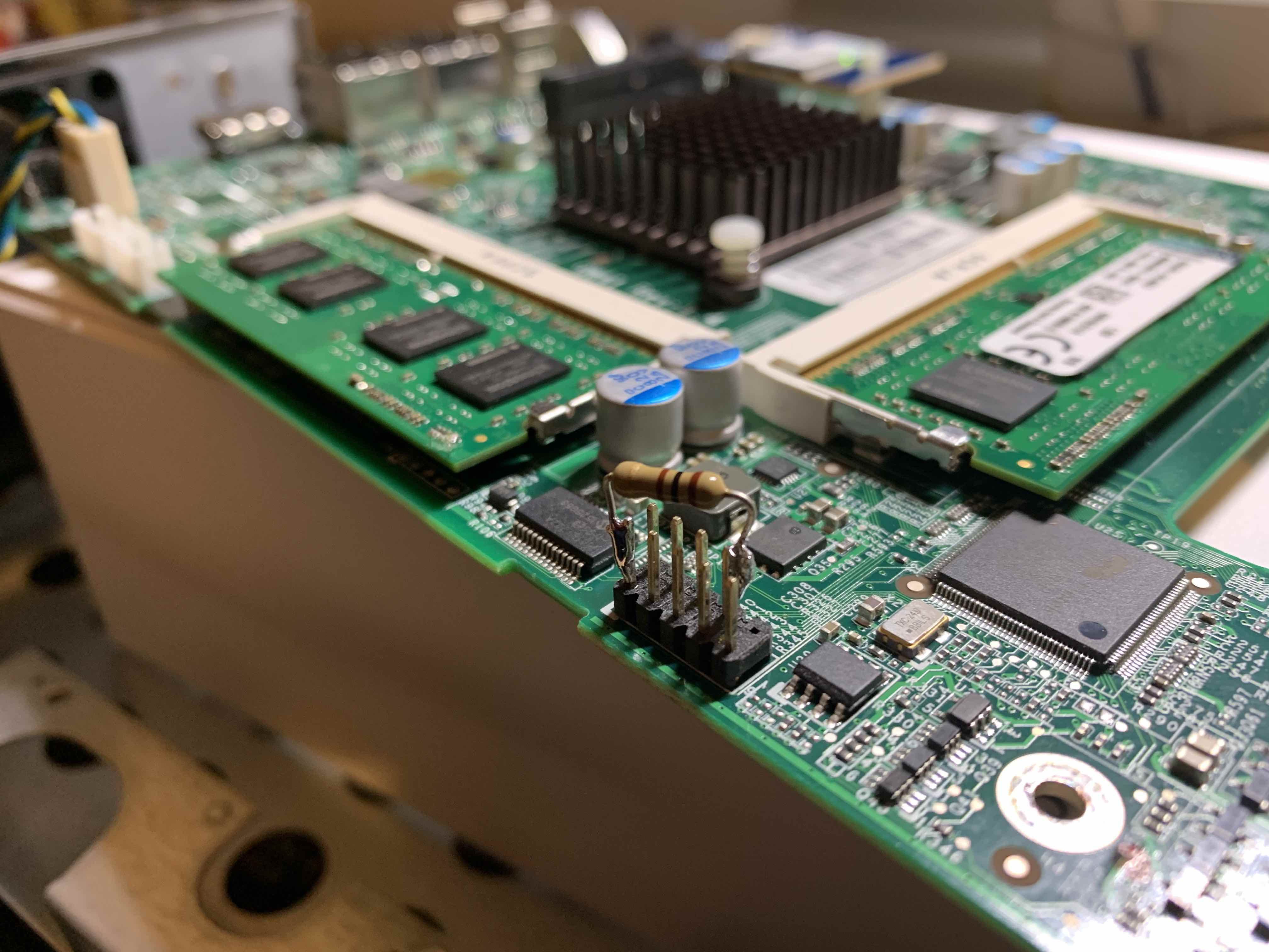 He soldado una resistencia de 100ohm entre el pin 1 y el 8, ha sido enchufar la corriente, y NAS recuperado,