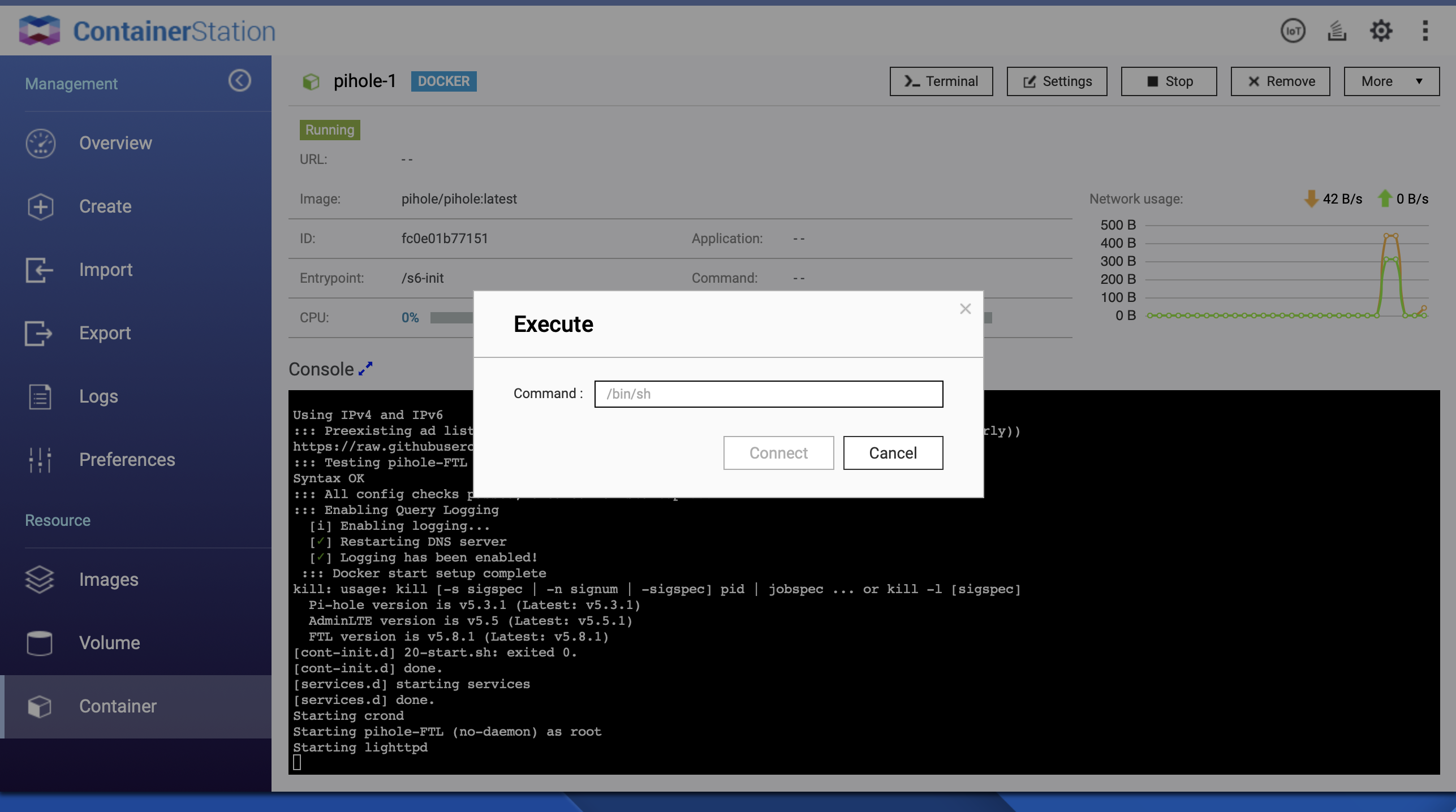 he probado desde el qnap en container Station console poniendo el comando: pihole -up pero no funciona no hace nada