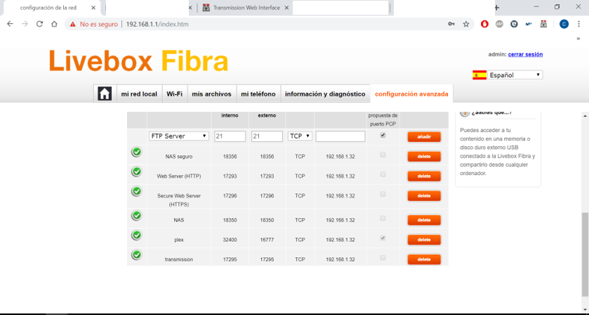 Para descargas uso el gestor Transmission, antes podía conectarme en remoto desde fuera de casa, ahora en casa tengo PEPEPHONE, lo primero que hice fué solicitar que me quitaran el CGNAT y lo hicieron al día siguiente.