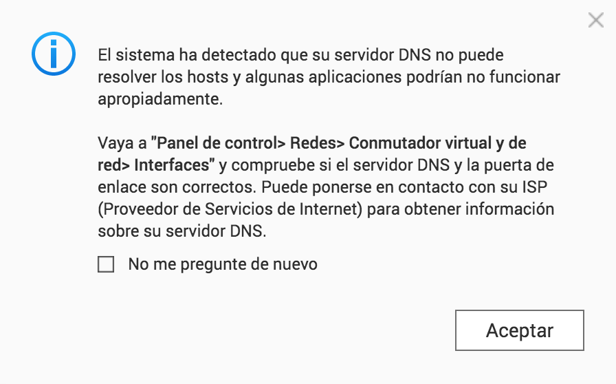 Al iniciarse sale el mensaje adjunto y no es capaz de conectarse al repositorio de aplicaciones de Qnap, ni en definitiva "salir" a internet.