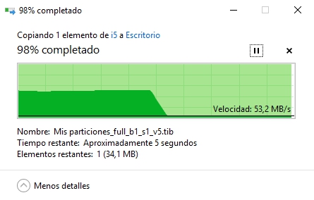 Es decir unos 25 segundos para 2.391MB, que sale una media de 95,65MB/s