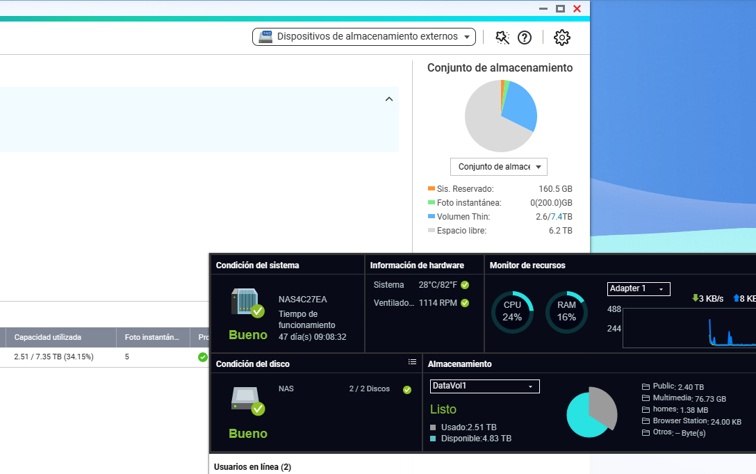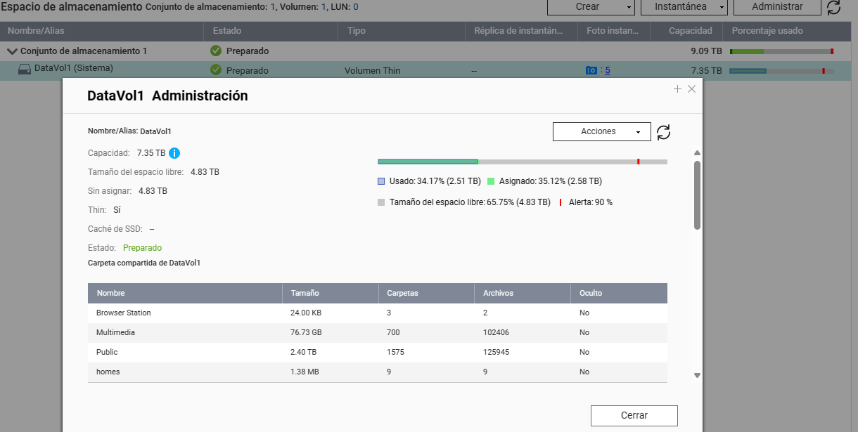 Perdonad mi ignorancia, pero no me cuadra me falta 1.74 Tb para completar los 9.09TB, he borrado instantáneas antiguas, y desconozco que capacidad ocupa QTS, tampoco se si he hecho bien la migración de los discos. No se a quien acudir, estaría agradecido si alguien me puede ayudar, o dirigirme a algún hilo de gente que tenga un problema similar. Gracias de antemano. Saludos.