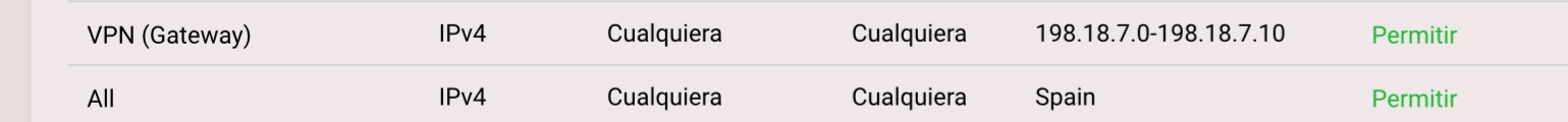 - En el cliente wireguard en lugar de poner 8.8.8.8 como DNS pon 198.18.7.1