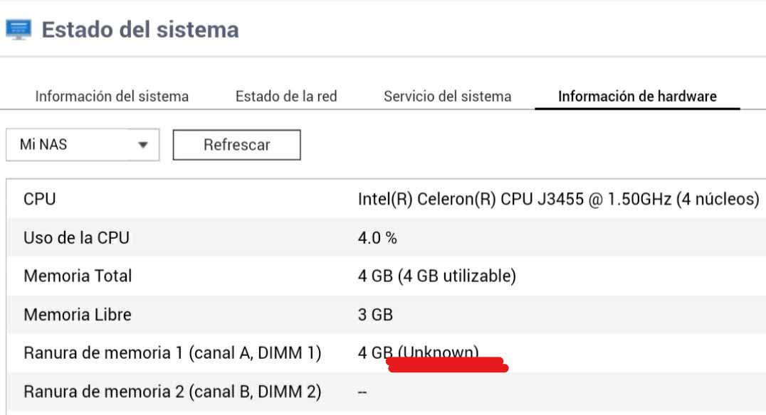 El dependiente de la tienda donde compré la memoria RAM me prestó un módulo de 4G para que lo probara en el NAS
