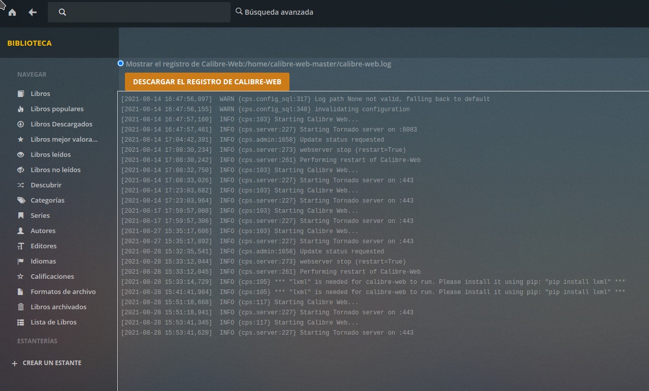 Resumiendo: Los que tengáis instalado a dia de hoy Calibre-web en el nas NO SE OS OCURRA ACTUALIZARLO desde la interfaz de configuración del programa dándole al botón de COMPROBAR ACTUALIZACIONES. Si lo hacéis el programa OS DEJARA DE FUNCIONAR.